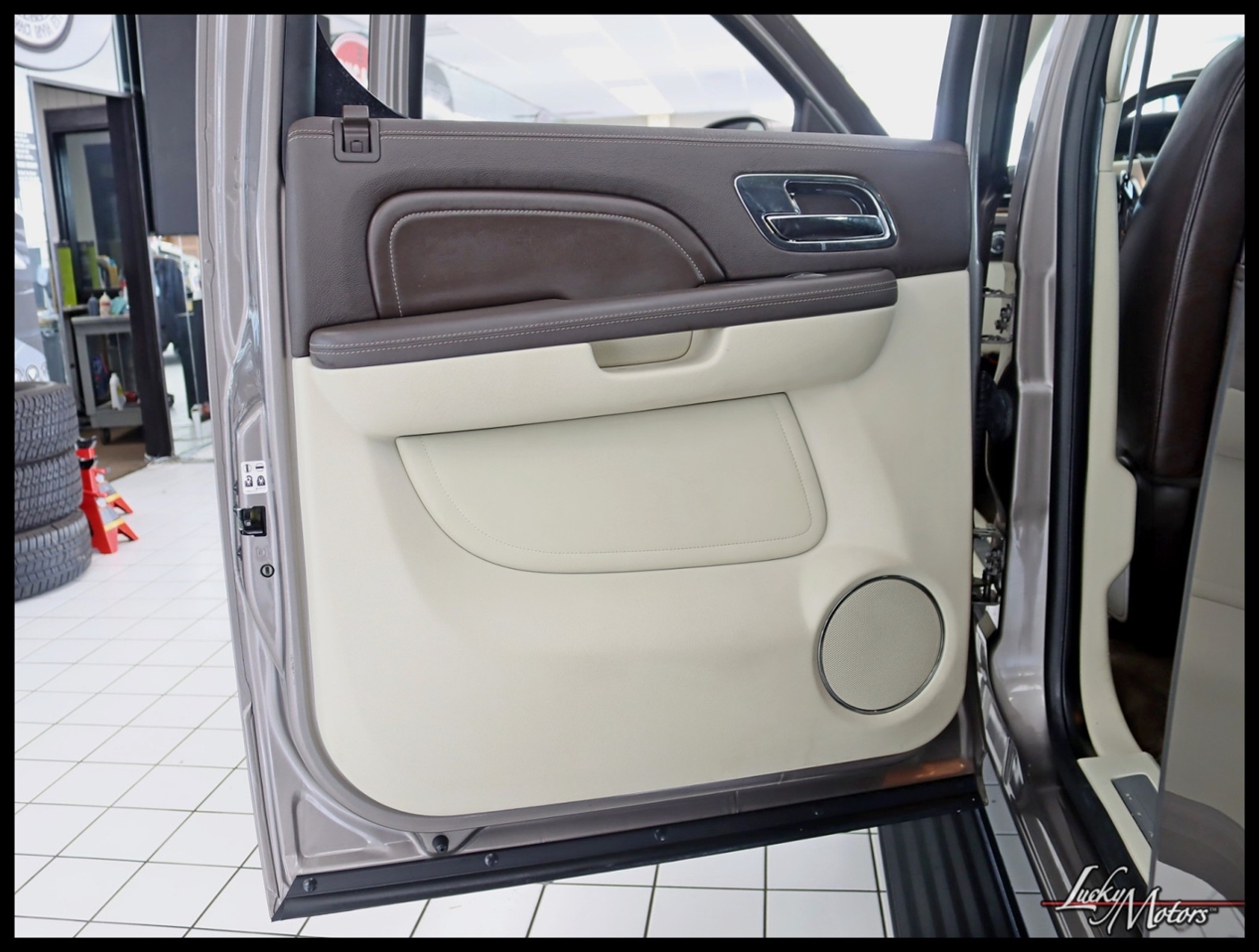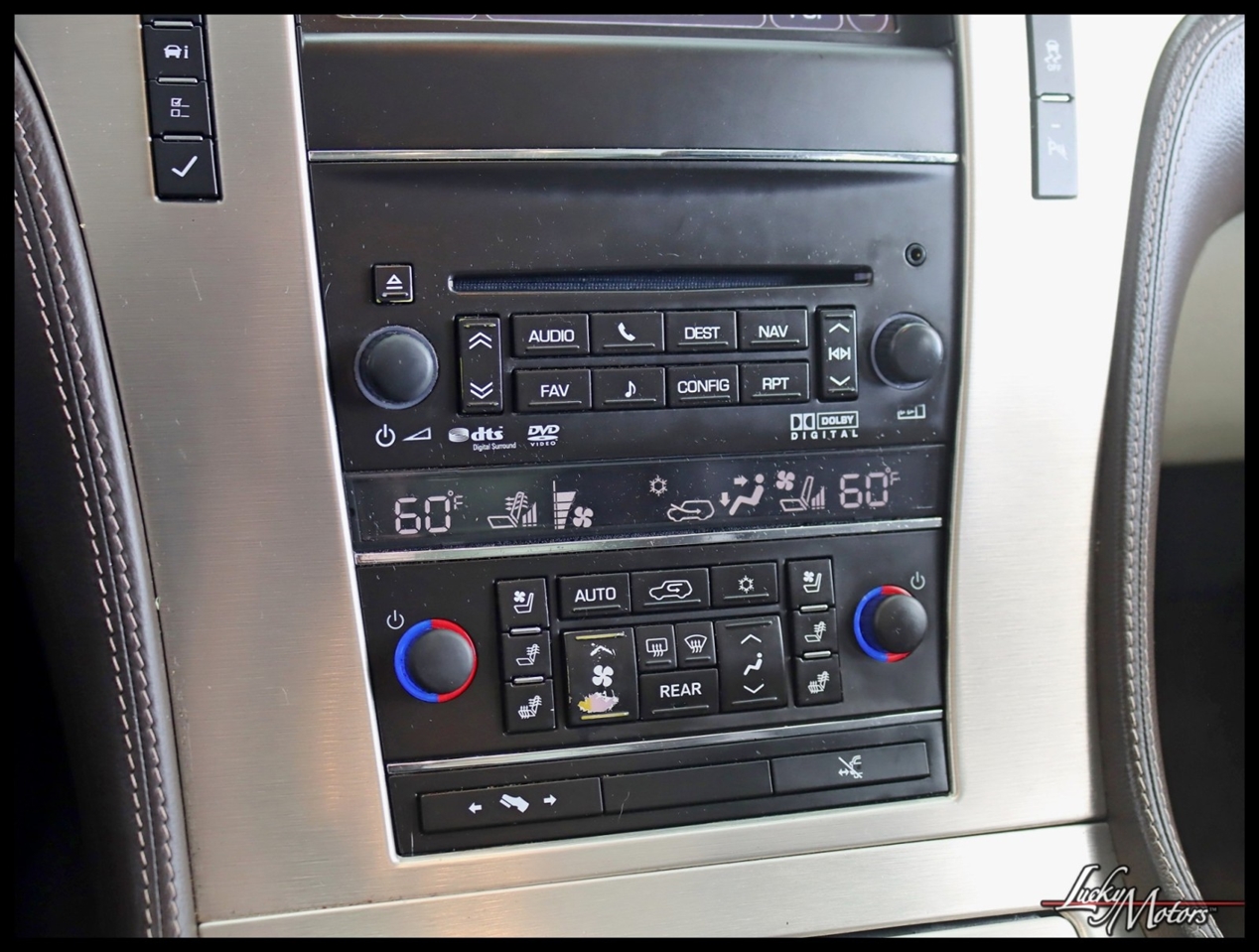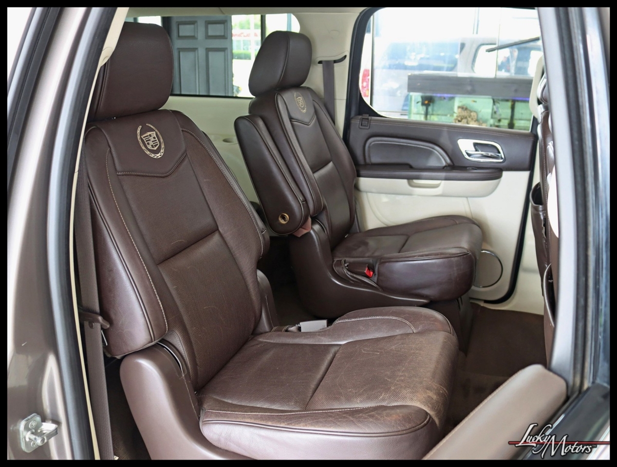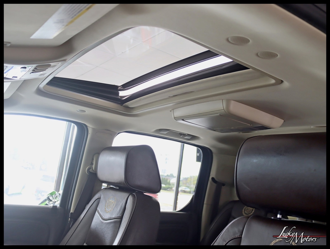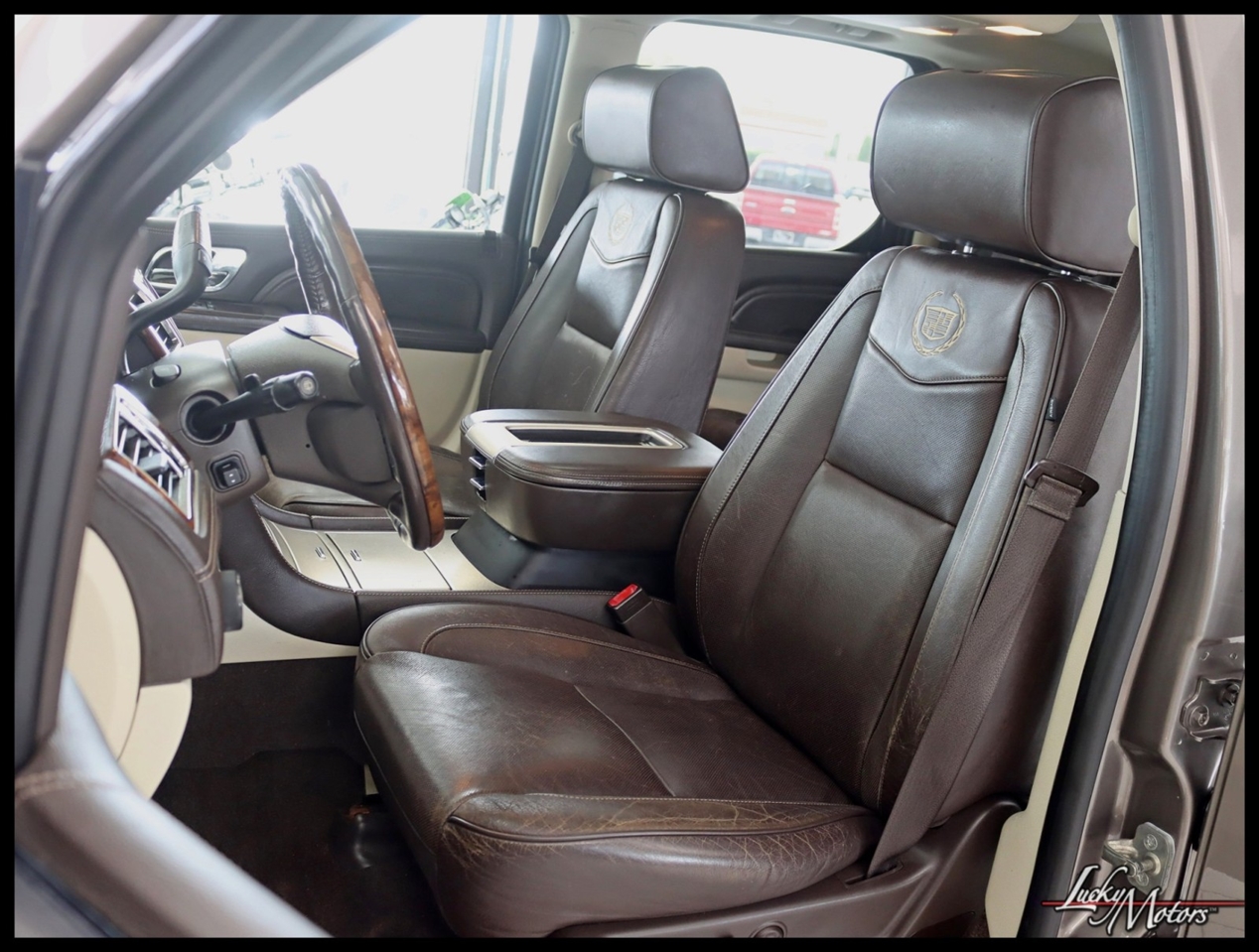 • Platinum includes unique upper and lower front grilles and fascia, (S85) unique 22 multi-spoke chrome wheels, (T4Q) LED headlamps, Cut-and-Sew leather-wrapped IP top pad and door uppers, vinyl-wrapped door lowers with contrasting-color French stitching, embroidered Cadillac insignias on front seats, genuine Olive Ash Burl and Walnut Burl woods with wood inlays and aluminum trimmed IP and console, unique console lid, (HNE) heated and cooled cup holders, chrome trim around HVAC vents, door handles and clock, full Aniline leather first and second row seats, full Nuance leather third row seat, (AYE) DVD screens located on backside of front row head restraints, (195) Ebony/Ebony interior or (415) Cocoa/Light Linen interior, unique door sills, unique floor mats, (TQ5) IntelliBeam headlamps, (UVD) heated steering wheel, (ARS) power release second row bucket seats, (BRS) power-retractable assist steps, (CF5) power sunroof, (UFT) Side Blind Zone Alert, (Z95) Magnetic Ride Control and (U42) overhead rear seat entertainment system
